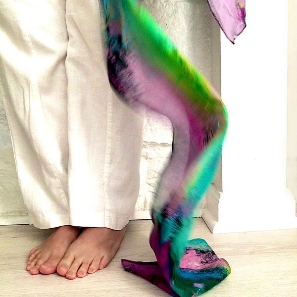 'Beautiful printed designs on fine silk, adapted from my original paintings.